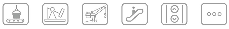 Air compressors, central air-conditioning, water pumps, textiles, plastics, ceramics, mining, conveyors, centrifuges, grinders, saws, metal processing, packaging machinery, elevators and escalators, pharmaceuticals, leather machines.